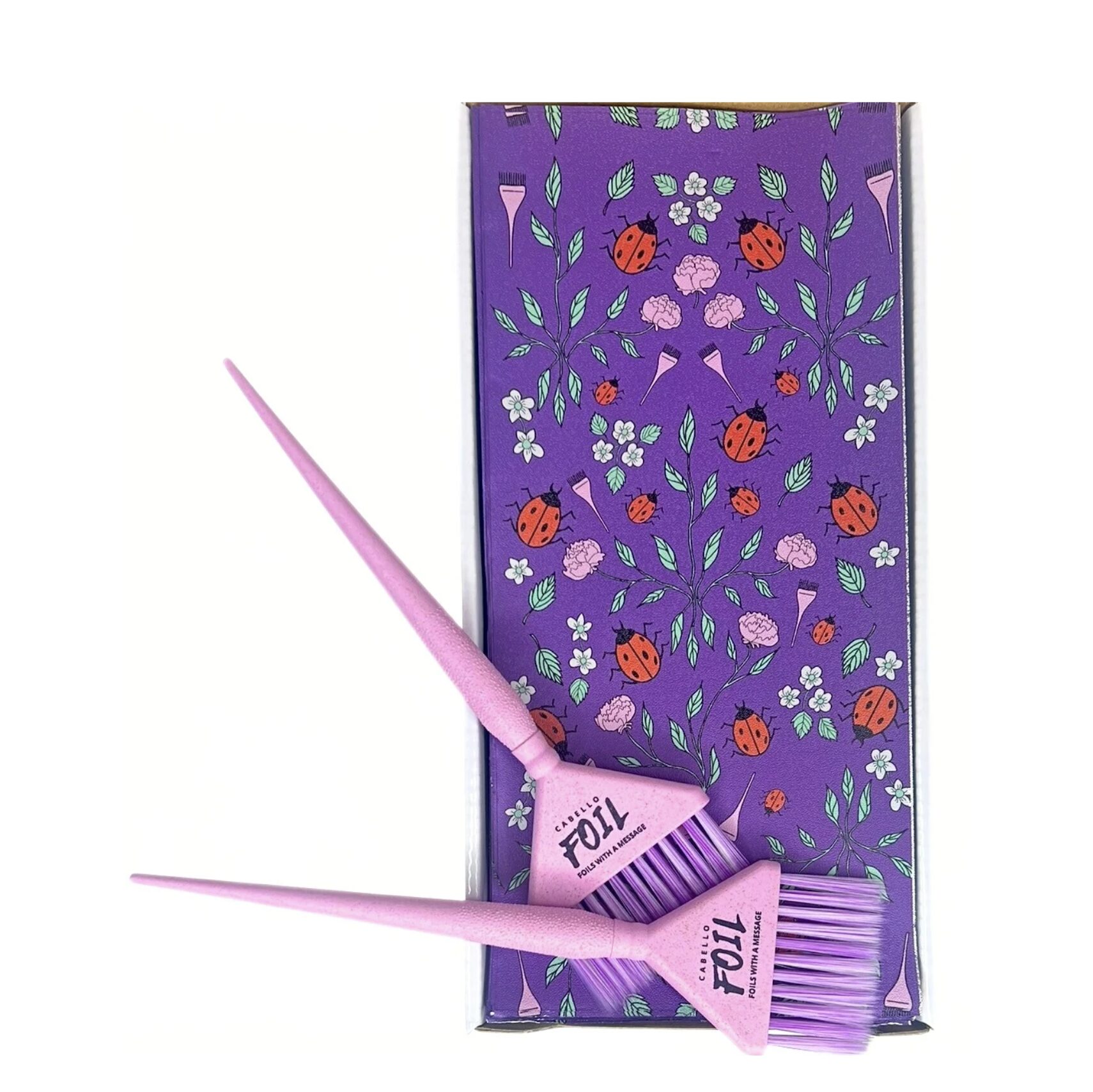 Inspired by the magic of transformation, the Lovebug Bloom foil design brings together two powerful symbols – ladybugs and blooming flowers – to represent the essence of Cabello Foil: inclusivity, growth, and artistic expression.